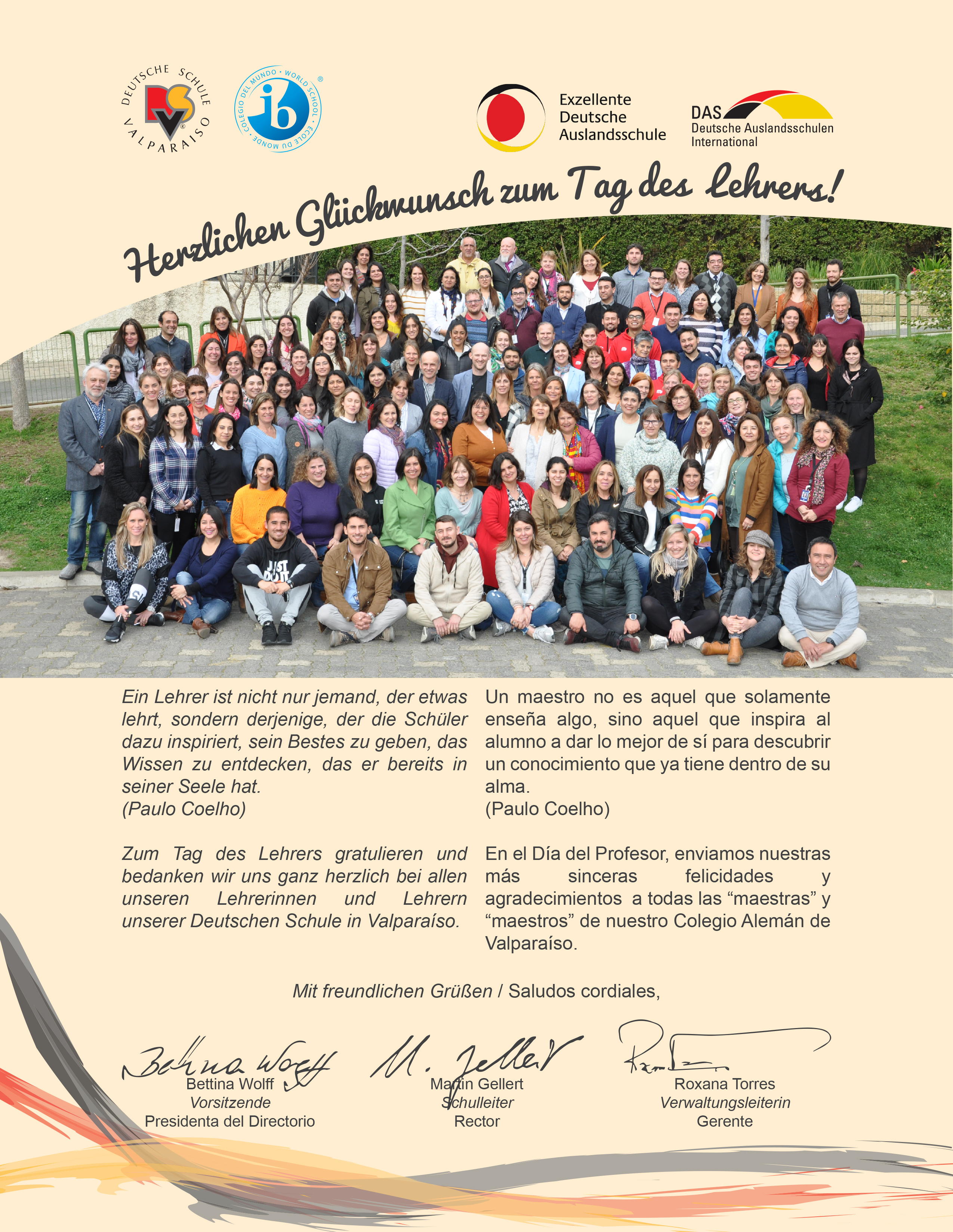 Gemeinsame Frühstücke, Festakte mit unterhaltsamen Momenten mit Musik, Tanz und guter Laune prägten diesen besonderen Tag, der besonders allen Lehrern der Deutschen Schule von Valparaíso gewidmet war.
