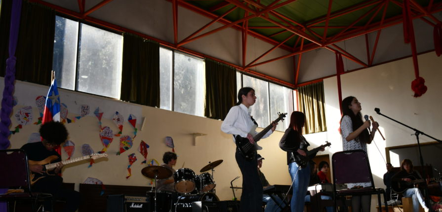 Para terminar el acto con unidad y esperanza, alumnos de III° Medio que interpretaron el tema «Todos Juntos» de la banda nacional «Los Jaivas» quienes este año cumplen 60 años desde su fundación.