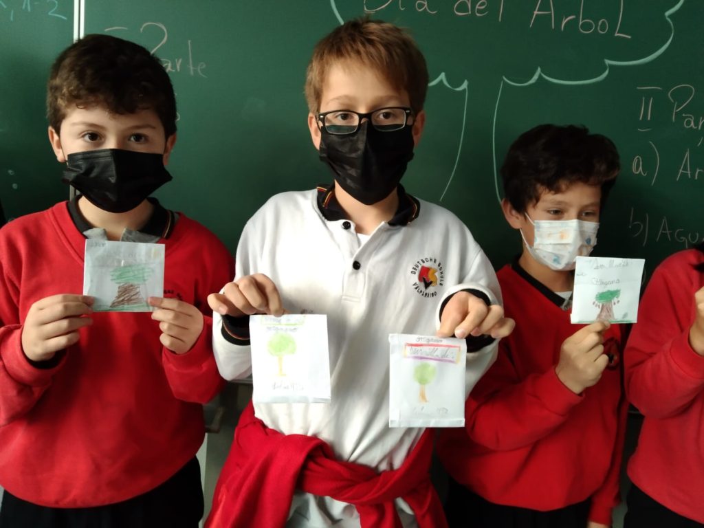 En nuestro colegio celebramos el Día del Árbol con los alumnos de Enseñanza Básica quienes toman la asignatura de Religión. Los 4° Básicos prepararon letreros y sobres con semillas de árboles, flores y plantas para una especial ceremonia en el patio de Enseñanza Media con participación de los 1 Básicos como invitados especiales. Los alumnos más pequeños recibieron los sobres con el compromiso de plantar las semillas en sus casas; de esta manera se quiso emular la ceremonia de intercambio de semillas o «Trafkintü» (rito propio de la cultura mapuche), pudiendo conocer más acerca de los ciclos de la biodiversidad, su importancia y resguardo para la continuidad de la vida del planeta tierra.
