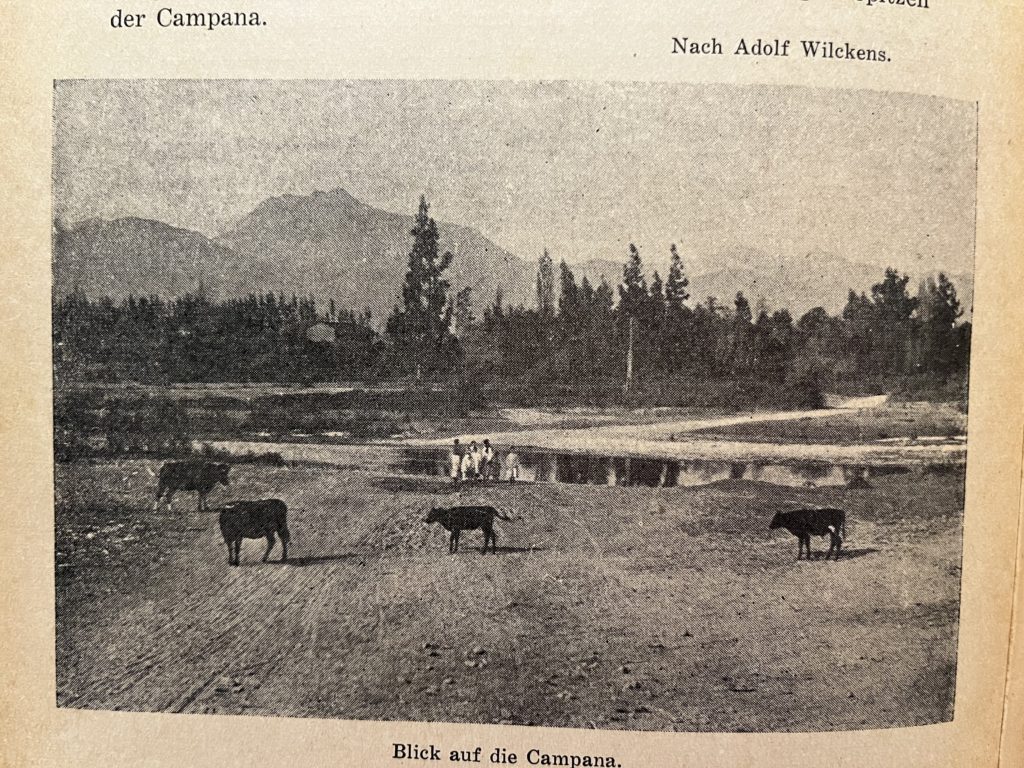 El tren se detiene. Nos bajamos y después de unas cuadras nos encontramos frente al “Ferienheim” propiedad de los alemanes de Valparaíso. Se abre una puerta. Ingresamos a un gran jardín, que está rodeado de edificios en forma de herradura. Hay más de cuarenta habitaciones, algunas de las cuales están destinadas para los alumnos del Colegio Alemán, mientras que el resto de las piezas son para los miembros de la colonia. Un gran jardín rodea al Ferienheim (hogar de vacaciones). Un Ciprés se eleva hacia el cielo, más allá se divisa una Araucaria, grandes Palmas Chilenas crecen plácidamente y entremedio hay variados bambúes. Flores multicolores nos acompañan durante todo el camino. Incluso podemos encontrar los bellos copihues de color púrpura, tan raros para esta zona y que brillan entre el oscuro follaje de los árboles que los protegen.