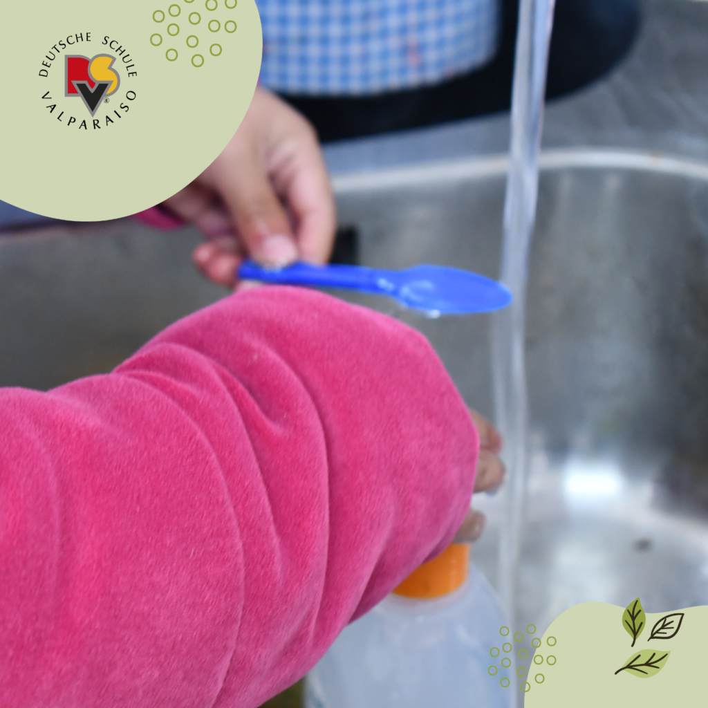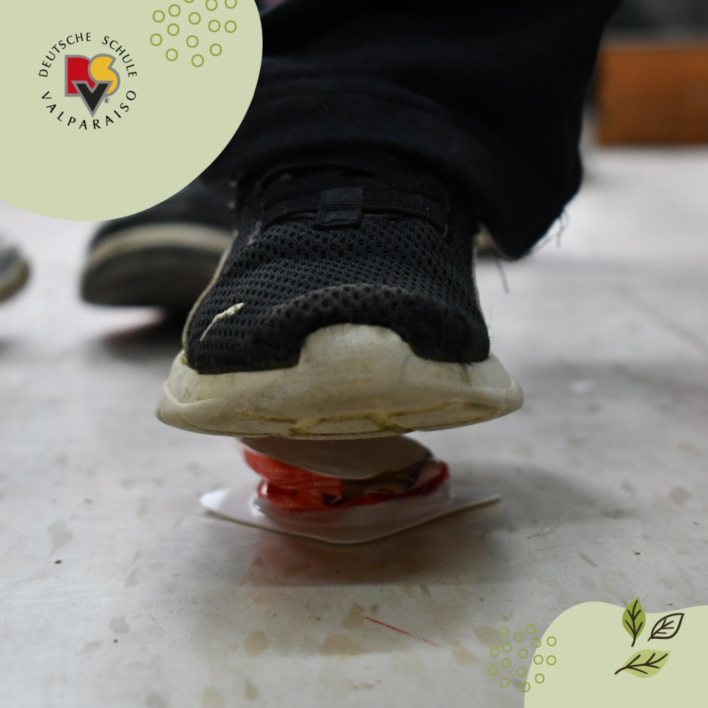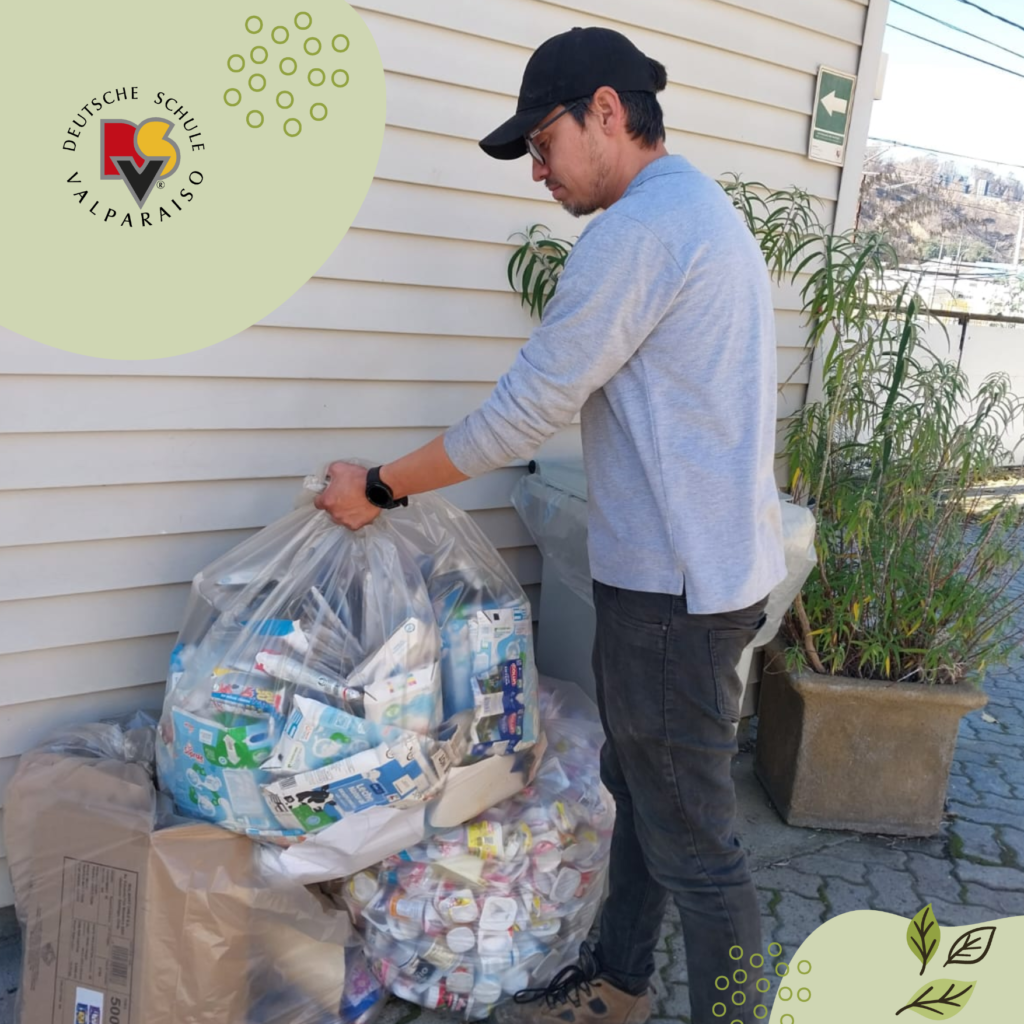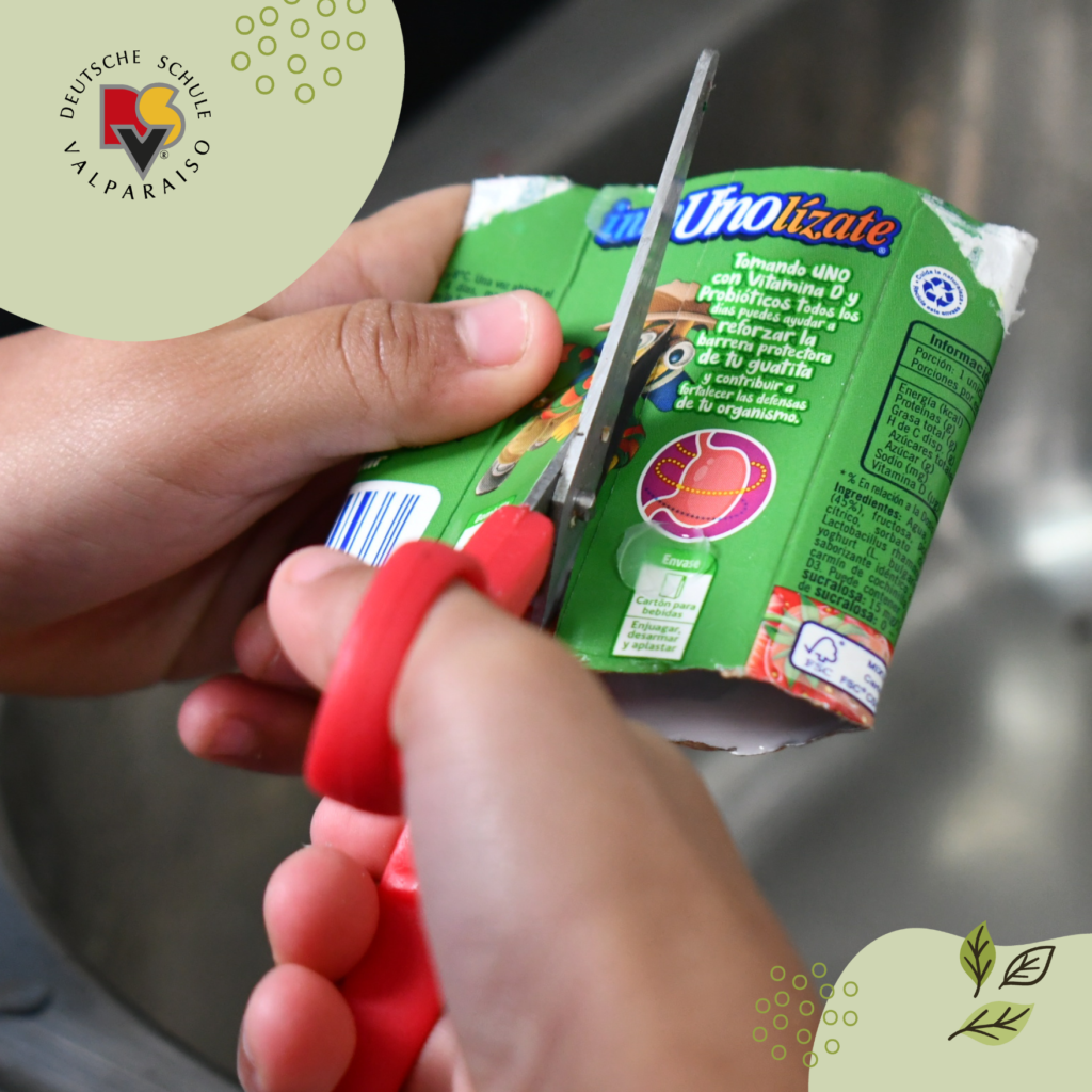 Los niños lavan, secan y aplastan los envases. En el caso de los tetrapack, primero los cortan para luego lavarlos bien.