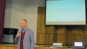 Nach einer kurzen Begrüßung durch den Schulleiter Dr. Hans Joachim Czoske und einleitenden Worten des Studienberaters Till Pechatscheck, haben die Schülerinnen und Schüler an den verschiedenen Workshops der Referenten teilgenommen. Von Jura über Medizin bis Sport gab es in den Seminaren ein breites Informationsangebot und ausreichend Zeit alle Fragen der Schülerinnen und Schüler zu beantworten, Wichtige Themenbereiche waren dabei Stipendien, Bewerbungsvorraussetzungen sowie Kosten eines Studium als ausländischer Student