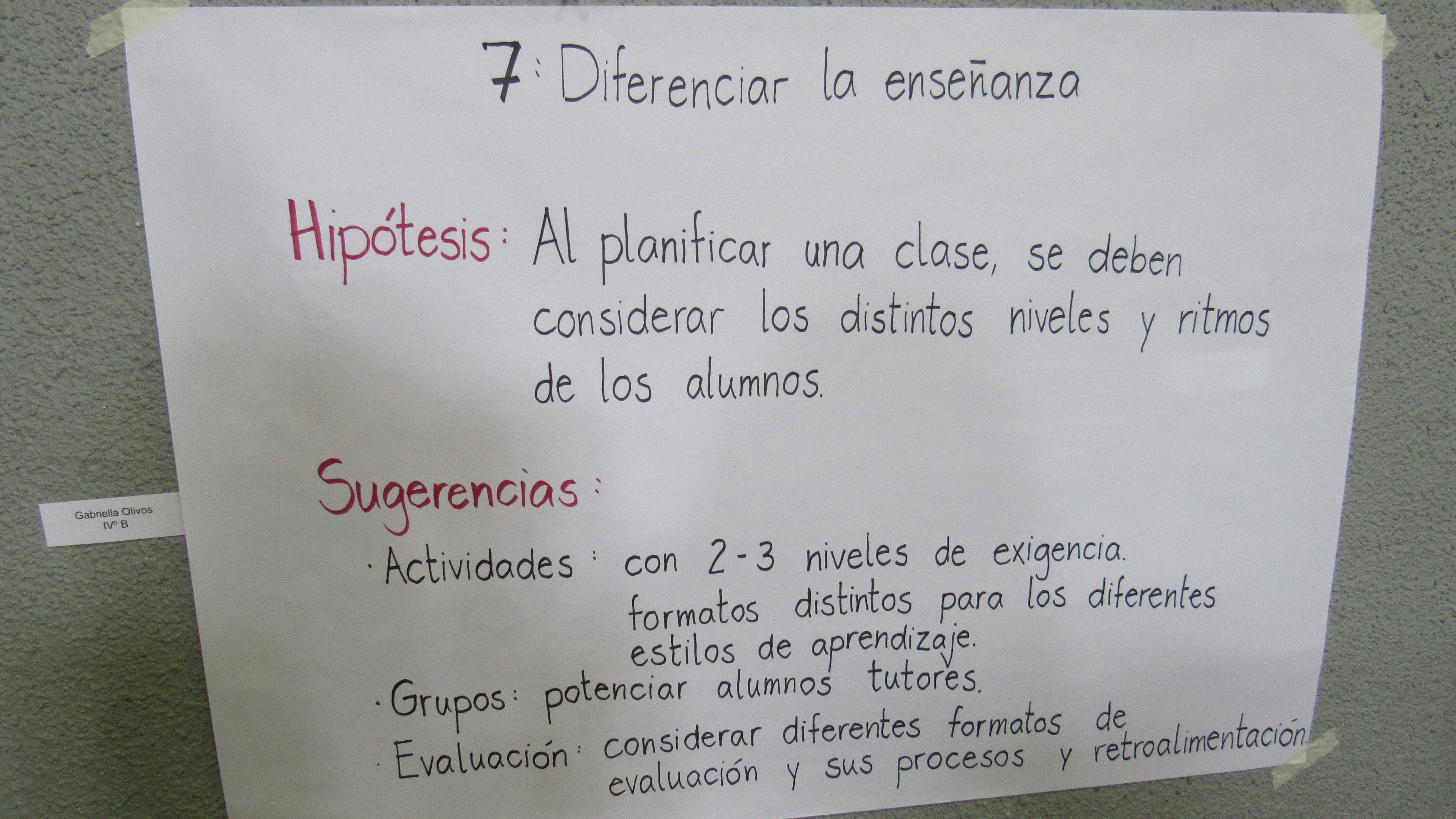 Además, se realizó un taller, ocasión en que los profesores pudieron reflexionar acerca de sus prácticas pedagógicas en el aula, a partir de la retroalimentación entregada por los inspectores. Los trabajos grupales plasmaron las conclusiones e ideas sobre afiches, con el fin de seguir optimizando la enseñanza.