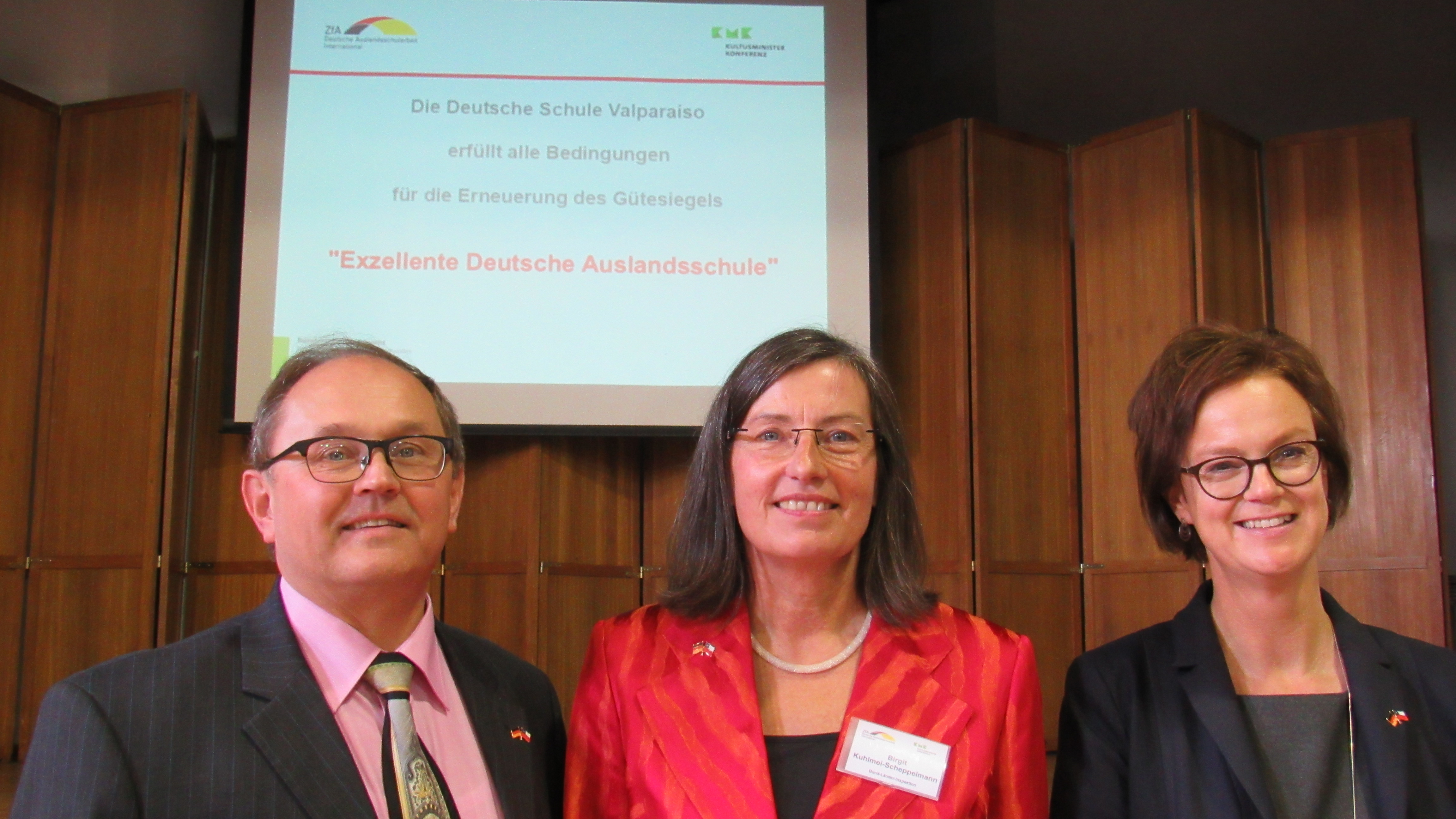 Después de más de 70 observaciones de clases y entrevistas con la Dirección del Colegio, la Gerencia, el Directorio y representantes del profesorado, alumnado y de los apoderados, el informe final dejó muy claro: Con gran éxito el DSV aprobó la inspección y el sello de calidad “Exzellente Deutsche Auslandsschule” (excelente Colegio Alemán en el extranjero) se le vuelve a otorgar.