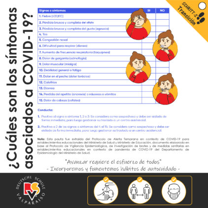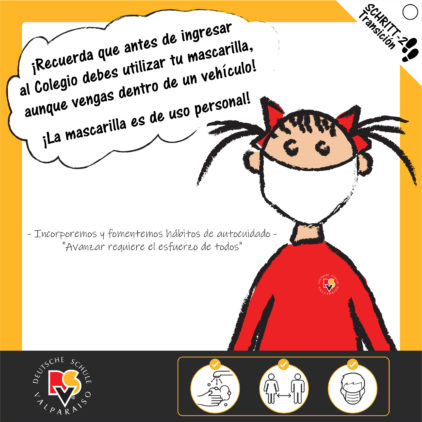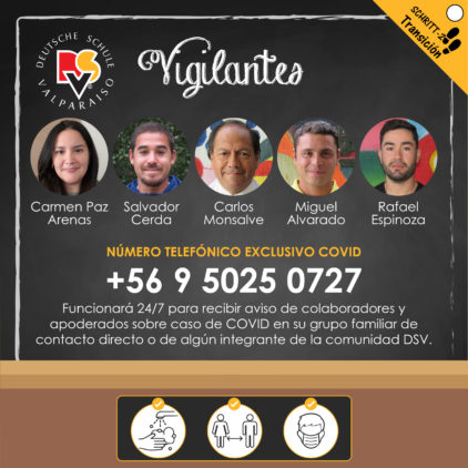 Todas infografías y videos que se encuentran en esta página y se difunden por las redes sociales del Colegio, son realizados por el Comité de Seguridad Escolar, el Equipo de Prevención de Riesgos y el Equipo de Comunicaciones de nuestro Colegio para todos los integrantes de la Comunidad DSV con la finalidad de cuidarnos entre todos.