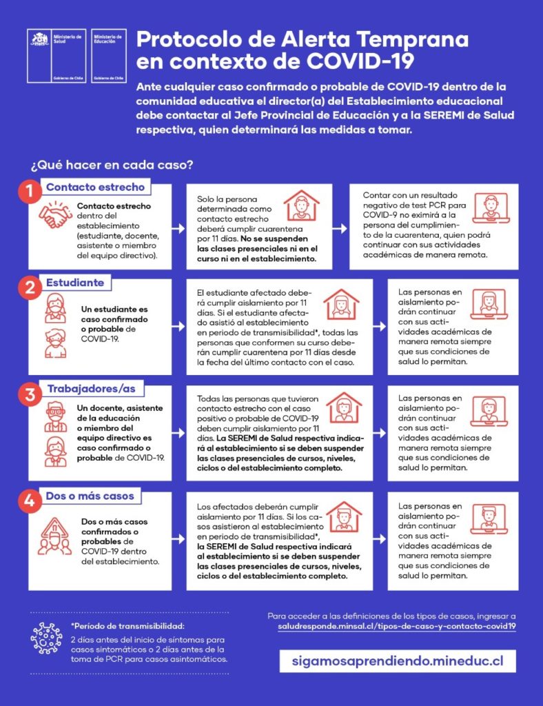 Este protocolo se implementará una vez que las autoridades del Ministerio de Salud (MINSAL) y del Ministerio de Educación (MINEDUC) entreguen las directrices y fechas para el regreso a clases en nuestra Comuna.