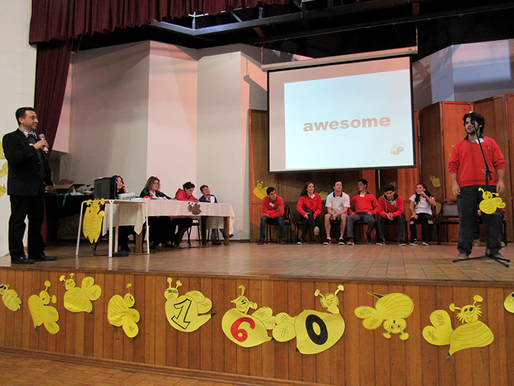 Participaron de esta actividad los alumnos de 5° Básico a IV° Medio (en sesiones por nivel), demostrando ante sus compañeros y los “jueces” (sus profesores) su mejor esfuerzo y concentración al deletrear las palabras en inglés que se escogen al azar.