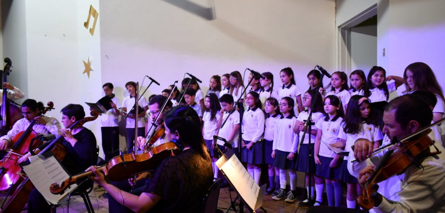 En lo que fue una inolvidable velada y un hito cultural para nuestro colegio, el jueves 14 de diciembre tuvo lugar el concierto protagonizado por el Coro de Enseñanza de nuestro colegio, bajo la dirección de la profesora Alejandra Pregnan, en conjunto con la Orquesta Marga Marga de Viña del Mar, a cargo de su director-fundador Luis José Recart. Esta actividad fue impulsada y organizada por el Departamento de Música de nuestro establecimiento con la finalidad de potenciar los vínculos de nuestra institución con agrupaciones musicales en la región y poner en el centro el desarrollo musical de nuestros alumnos.