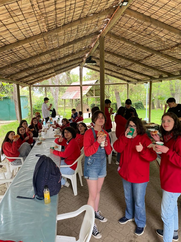 «Iniciamos el día en Limache junto a nuestra profesora jefe, Frau Daniela Mancilla en compañía del Profesor Felipe Paredes y el Orientador Sr. Nelson Aguilera. Participamos de distintas dinámicas orientadas a fortalecer la a la sana convivencia y los vínculos como grupo curso. Se realizaron juegos que nos involucraron a todos, bajo un ambiente de tranquilidad, armonía y compañerismo. En un momento se formaron grupos en los que se compartió en base a preguntas que nos permitieron conocernos más. Pudimos compartir entre compañeros y compañeras, propiciando un espacio de comunicación libre y de mutuo conocimiento. Compartimos una colación compartida y otras actividades de unión, tuvimos un espacio muy agradable de convivencia. Concluimos la jornada, compartiendo reflexiones y valorando el momento vivido. Comimos unas ricas unas pizzas y volvimos al colegio en tren, cerrando el día con nuevas miradas y rescatando la oportunidad de haber vivido el Ferien que nos perdimos en 8vo básico cuando estuvimos en pandemia, el Ferien que nunca tuvimos.»