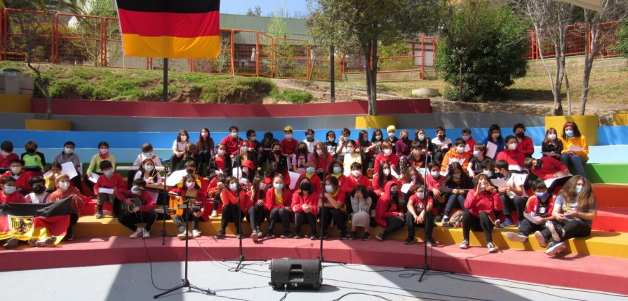 Die Schüler:innen der Grundstufe präsentieren im Laufe der Woche im neuen Amphitheater verschiedene Beiträge, dazu gehören Musik, Tänze und Gedichte auf Deutsch.