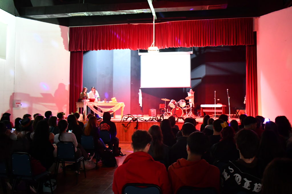 En el evento de Enseñanza Media, la música tomó protagonismo con un karaoke, la presentación de la Rockband y una coreografía de Thriller. Además, durante el día se celebraron concursos de disfraces para alumnos y profesores, junto con un concurso de decoración de salas para 5° y 6° Básicos.
