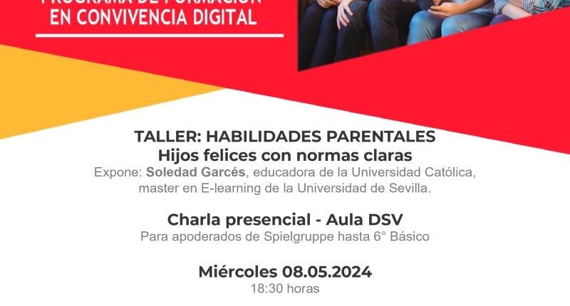 Junto con saludar, los dejamos cordialmente invitados a la próxima charla para apoderados en el marco del Programa de Formación en Buena Convivencia Digital. Esta actividad será dirigida por la directora de la Fundación para la Convivencia Digital, Soledad Garcés.