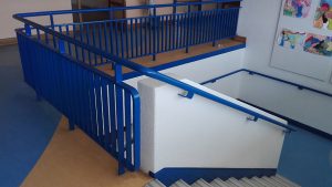 • Wartung in allen Etagen des Hauptgebäudes (Anstricharbeit der Treppen, Gelände und Flure)