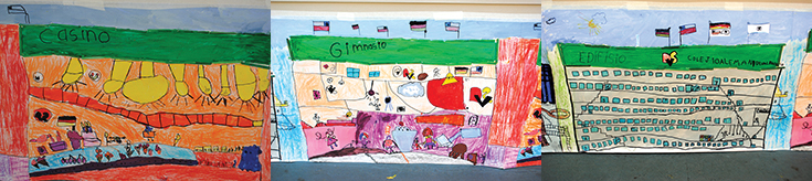Junto a esta exposición se colgaron los trabajos realizados para la Projektwoche, donde el Kindergarten 2 trabajó “El colegio antiguo” -donde se aprecia claramente el ex colegio del Cerro Concepción de Valparaíso y su entorno-, “El colegio actual” -donde los niños trabajaron en grupos para pintar los diversos sectores de la actual infraestructura- y “El colegio del futuro” – donde se destaca el maravilloso imaginario y la creatividad colectiva de los niños, quienes visionan un edificio mágico con elementos futuristas y metálicos, con grandes avances tecnológicos y energía autosustentable. Todo este trabajo estuvo siempre acompañado por “apetitosas actividades” que se preparaban en la cocina del Kindergarten.
