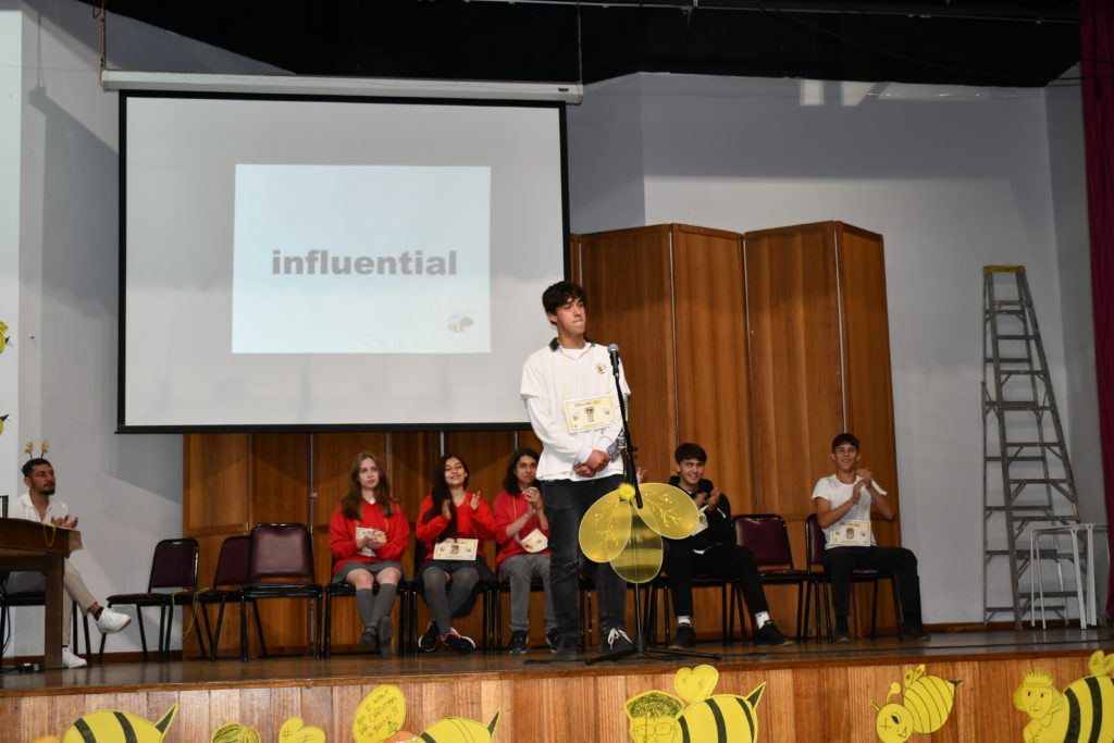 Nuevamente, los alumnos demostraron gran entusiasmo y mucho talento en deletrear palabras como «evening», neighbourhood, cemetery», etc. La audiencia se mostró muy expectante ante sus compañeros participantes. Además, alumnos de la audiencia fueron invitados a participar de juegos linguísticos, «Sing along» y otras actividades en inglés.