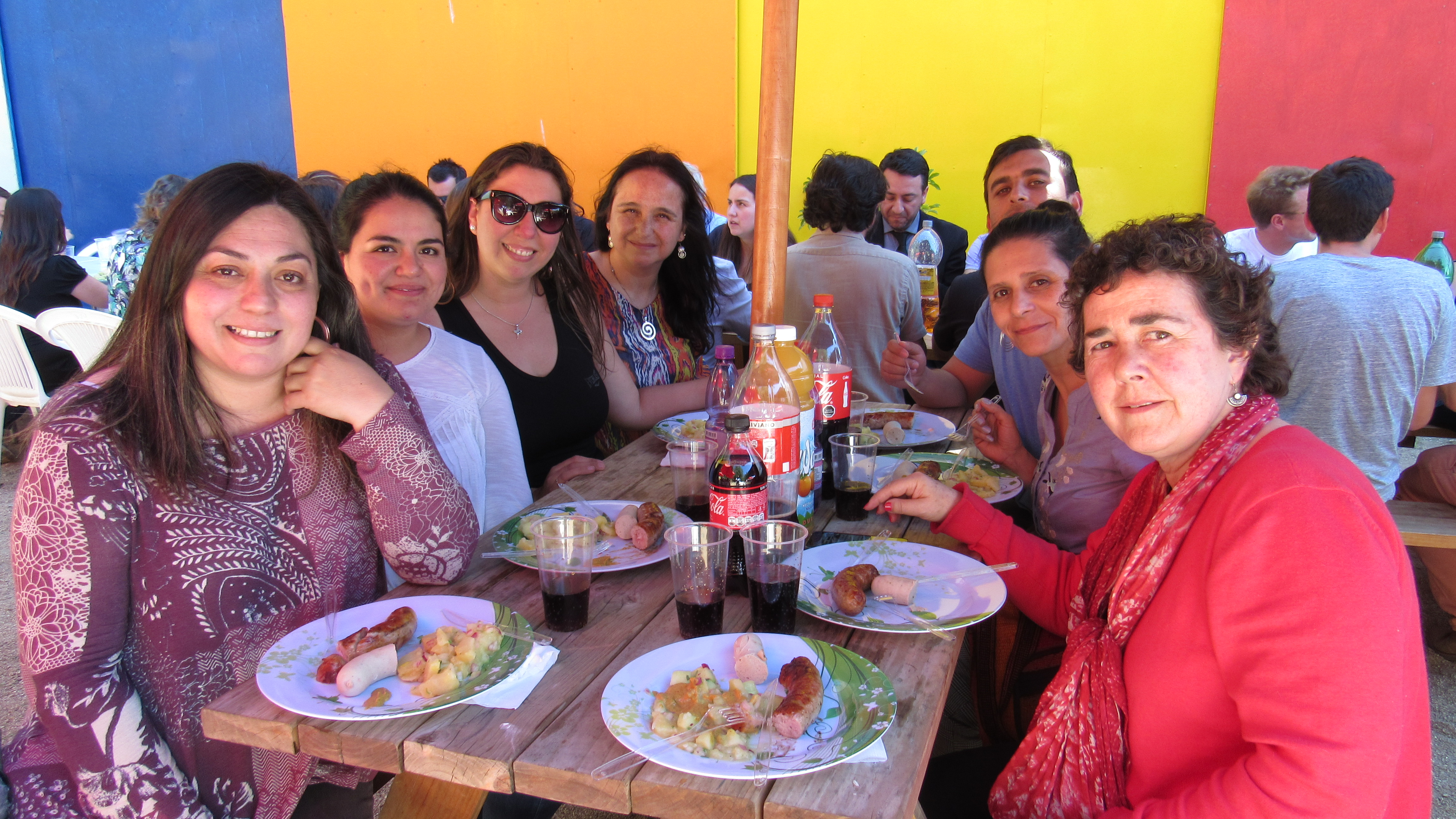 Los colaboradores también tuvieron una celebración, y esto fue a la hora del almuerzo: Administración organizó en el patio de la Media un rico asado de salchichas alemanas, con ensalada de papas y chucrut, acompañado por música del Carnaval de Colonia.