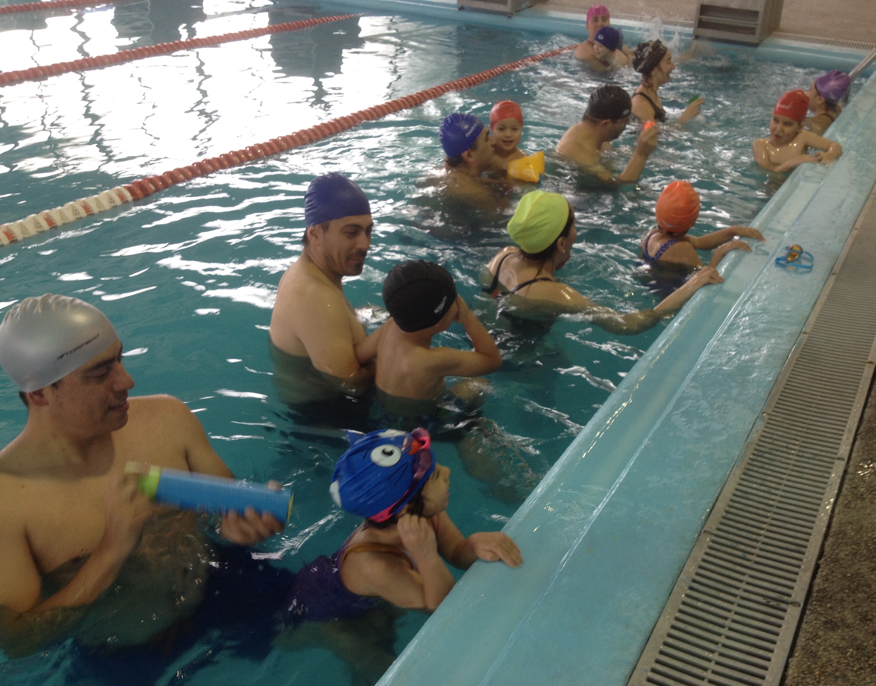 Con gran éxito se ha desarrollado la primera sesión del Programa PADRE HIJO. Fue muy expectante el primer encuentro de esta actividad conjunta con el medio acuático. Se apreciaron muchas caras de sorpresas en los niños al inicio y que posteriormente se fueron transformando en caras de satisfacción al alternar con los diferentes materiales y juguetes acuáticos en compañía de sus respectivos padres y la dirección del profesor.